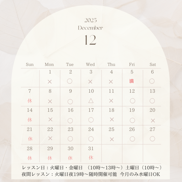 火曜日、水曜、金曜日は終日レッスン対応可能です。