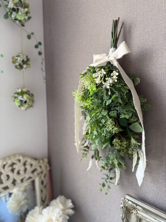 大きめのデザインリースや、スワッグ・フラワーボールなど、さらに応用的なデザインに挑戦していきます。