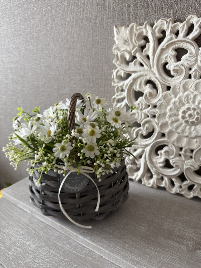 ちいさなバスケットに季節のお花を花を摘んでそっと置いた様な生花のようなアレンジメントを楽しみましょう。